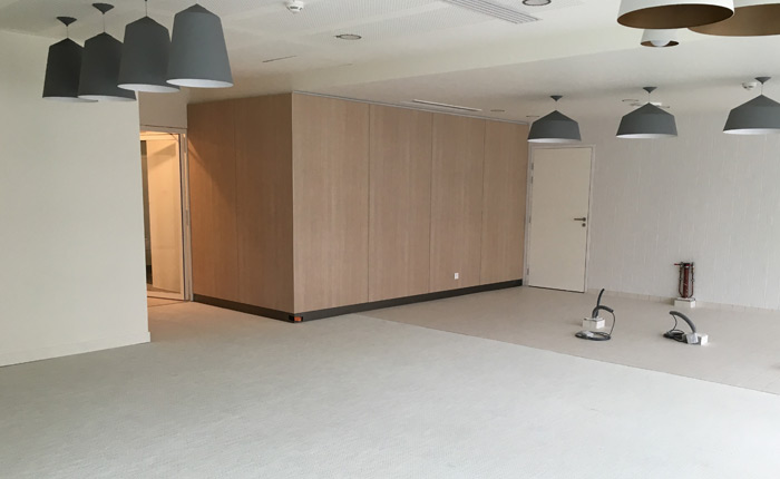 - Décoration murale en panneaux stratifiés sur tous les paliers d’ascenseurs
